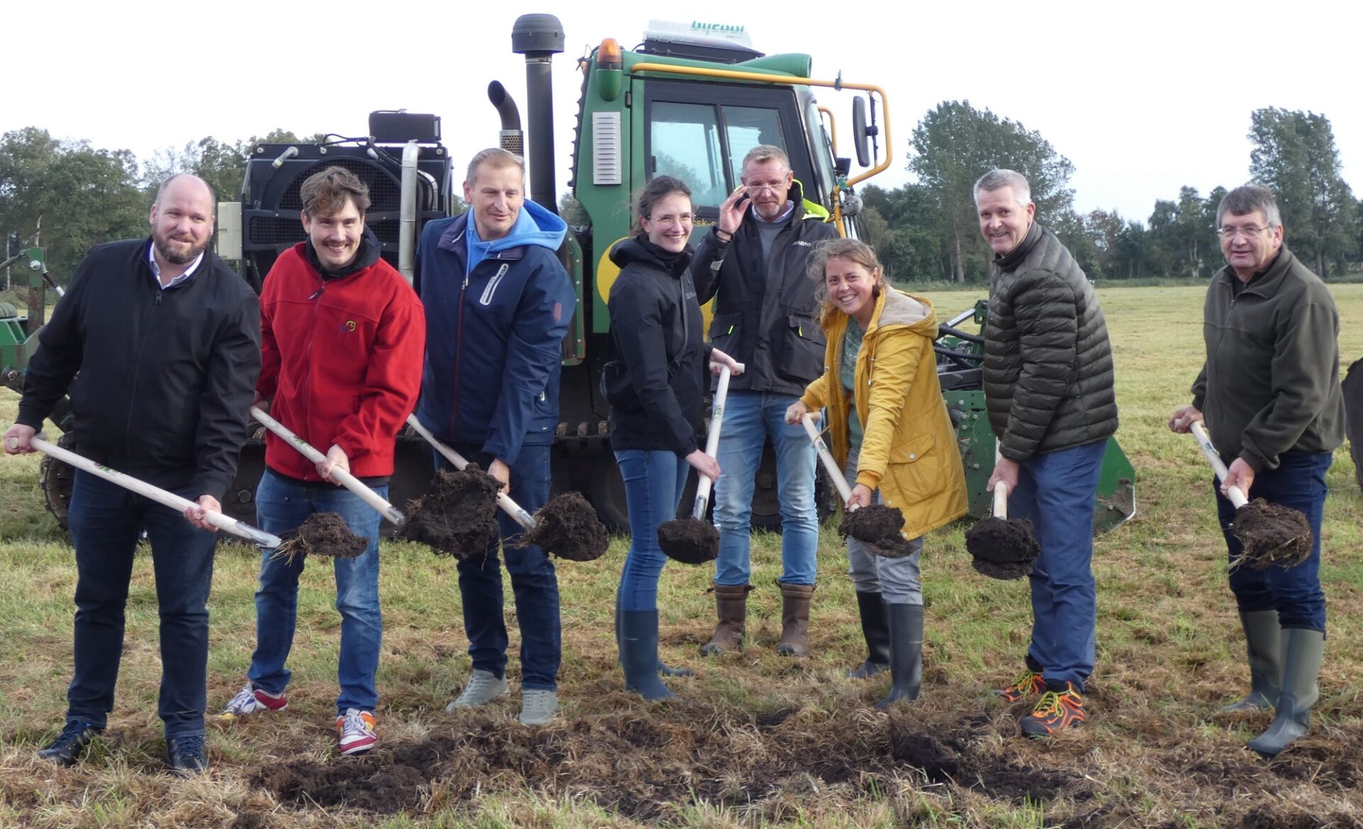 Landkreis Cuxhaven (24. September 2025) – Am Nachmittag des 15.09.2025 feierte die Naturschutzstiftung mit rund 30 Gästen den Spatenstich zum Bau des Rohrkolbenpolders im Projekt RoNNi. Damit erreicht das Projekt einen wichtigen Meilenstein. „RoNNi“ steht für Nachhaltige Erzeugung und Verwertung von Rohrkolben auf Niedermoorstandorten in Niedersachsen. Das Modell- und Demonstrationsvorhaben hat zum Ziel, den Rohrkolbenanbau als moorbodenschonende landwirtschaftliche Nutzung auf Niedermoorstandorten voranzubringen. Dabei wird der Anbau von Rohrkolben in Niedersachsen erstmals im Praxismaßstab erprobt.